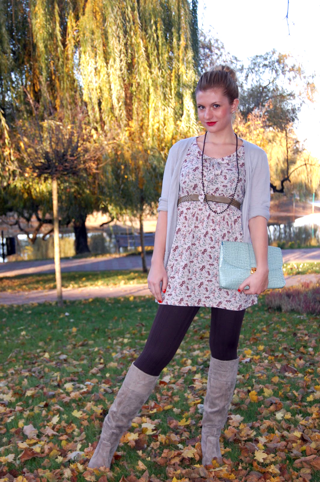 Dress: Pull & Bear; sweater: Koton; clutch: H&M; gloves: Reserved; boots: Progetto Glam