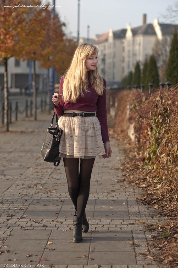 Jak się obudziłam rano i spojrzałam przez okno to wiedziałam, że czeka mnie dzień bez szpilek i kapelusza, przy takim wietrze mogłabym gdzieć polecieć, a kapelusza nie miałam zamiaru gonić. Nawet nie było zimno, chociaż przed wyjściem pobiegłam jeszcze po dodatkowy sweter i tradycyjnie "zabunkrowana" pobiegłam na przystanek złapać autobus, który zawsze jest na czas jak nie moge na niego zdążyć ;p Na uczelni standardowo, znowu nie zrobiłam wpisów, mój index czeka na właściwy moment, przesiedziałam całkowicie bez najmniejszego sensu zajęcia ogranizacyjne z tenisa i ściemniałam godzinę na seminarium dlaczego nie przyniosłam kolejnego rozdziału. Po tym jakże męczącym tygodniu na uczelni zaczynam długi weekend i tym razem naprawdę mam zamiar odpocząć ;)