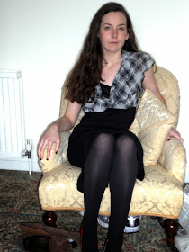 • Today’s dress was brought for me by the boy as a cheer up treat yesterday.  It is some unusual make but it was from British Heart Foundation and was only £3.99.  I wore it with my checker tights and some huge heels to give me a bit of a boost.  I am not usually a fan of purple but according to the boy it suits my hair colour.  My baby brother took the photos for me before having to head out to see his lovely lady.  He is a big fan of strange angles which he creates by spinning the camera around and randomly taking the photos when I am least expecting it.